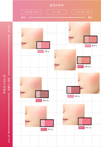 右側の血色カラーを頬の中央からフェイスラインへ向かってふんわりぼかします。