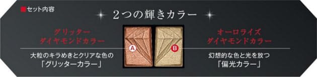 大粒の輝きを放つグリッターカラー と、幻想的なオーロラカラーの2色を セットにしました。