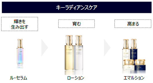 スキンケアの中心である「美容液・化粧水・乳液」の3ステップを「キーラディアンスケア」とし、年代を問わず全ての人におすすめのスキンケアとしてと位置づけます。