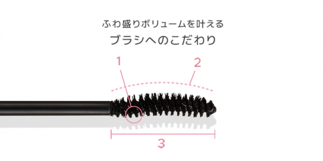 ① ブラシの毛量・長さ・柔らかさの黄金比により、ダマになりにくく、セパレートが実現