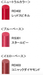 どちらのルージュも、鮮やかなカラーなのに、つけると自然になじむカラーです。