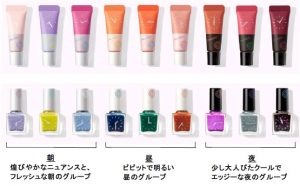 同日発売のネイルの新色と合わせ、それぞれ朝、昼、夜の3つのグループに分け、各9色展開します。