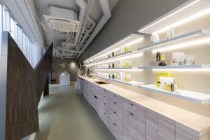 1階のショップでは、アスレティアビューティートレーナーのパーソナルなサポートのもと、実際に商品のテクスチャーや香りを試すことができます。