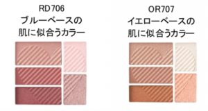今回の新色は、ブルーベース、イエローベースそれぞれの肌色に合う2種で似合うカラーが簡単に選べるのがうれしい。