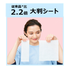 新開発の大判シートを採用したことで、毛穴の凹みに入り込んだベースメイクや汚れまで、1枚でしっかり落とせる洗浄性能と、サッと使える手軽さを実現しました。