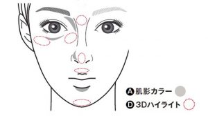 また、Ⓐをシェーディング、Ⓓをハイライトとして顔全体に使うのもおすすめです。