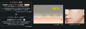 さらに、初採用となる、化粧崩れの原因となる余分な皮脂を固める「皮脂固化カバーパウダー」を配合。毛穴・凹凸をパウダリーにカバーしながら、テカリ・べたつき・崩れを長時間抑制し、さらさらでリアルなセミマット肌が持続します。