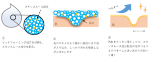 泡立てが苦手な人でも水溶けがよいため、手の平でテクニックいらずで泡立つリッチフォーミング処方。