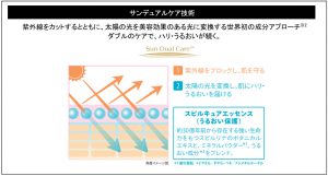 紫外線をカットすると同時に、太陽の光を美容効果のある光に変換する世界初の成分アプローチ サンデュアルケア技術を搭載した日中用美容乳液・化粧下地。