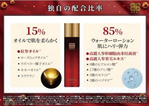 「ヘリテージオイル・イン・ローション」は、オイル15%:ローション85%を、“分離させることなく”ミックス。