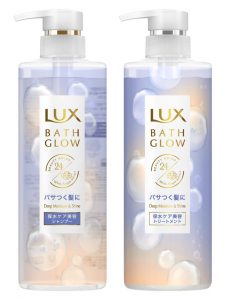 同時発売の「ラックス バスグロウ ディープモイスチャー&シャイン」シリーズ(定番品)と合わせて使えば、さらに洗い立てのうるおい、つやが持続するまとまりの良い髪が続きます。