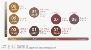 まるで、毎日違うファッションを選ぶように、髪色やメイクに合わせて選べます。