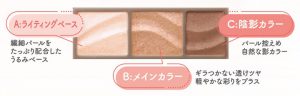 「セザンヌ ライティングアップアイシャドウ」は、ツヤと彩りで目元印象を明るく仕上げる3色アイシャドウ。