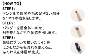眉全体に立体感を演出する「パウダー」は新処方でふんわり感がアップ。より自然に立体的に仕上がります。