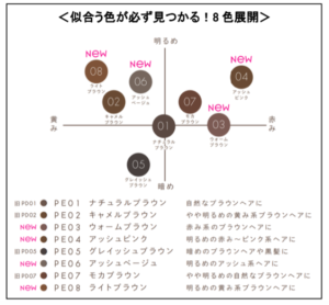 これまでの人気カラー4色は引き継ぎつつ、トレンドのアッシュ系や赤み系のカラーを追加し、似合う色が必ず見つかります。